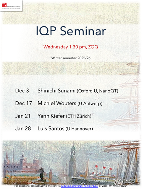 Seminars IQP Seminar WiSe 25/26: List of past seminar-events:636. WE - Heraeus - Seminar "Quantum-Limited Metrology and Sensing"Many-body theory of ultra-cold atoms